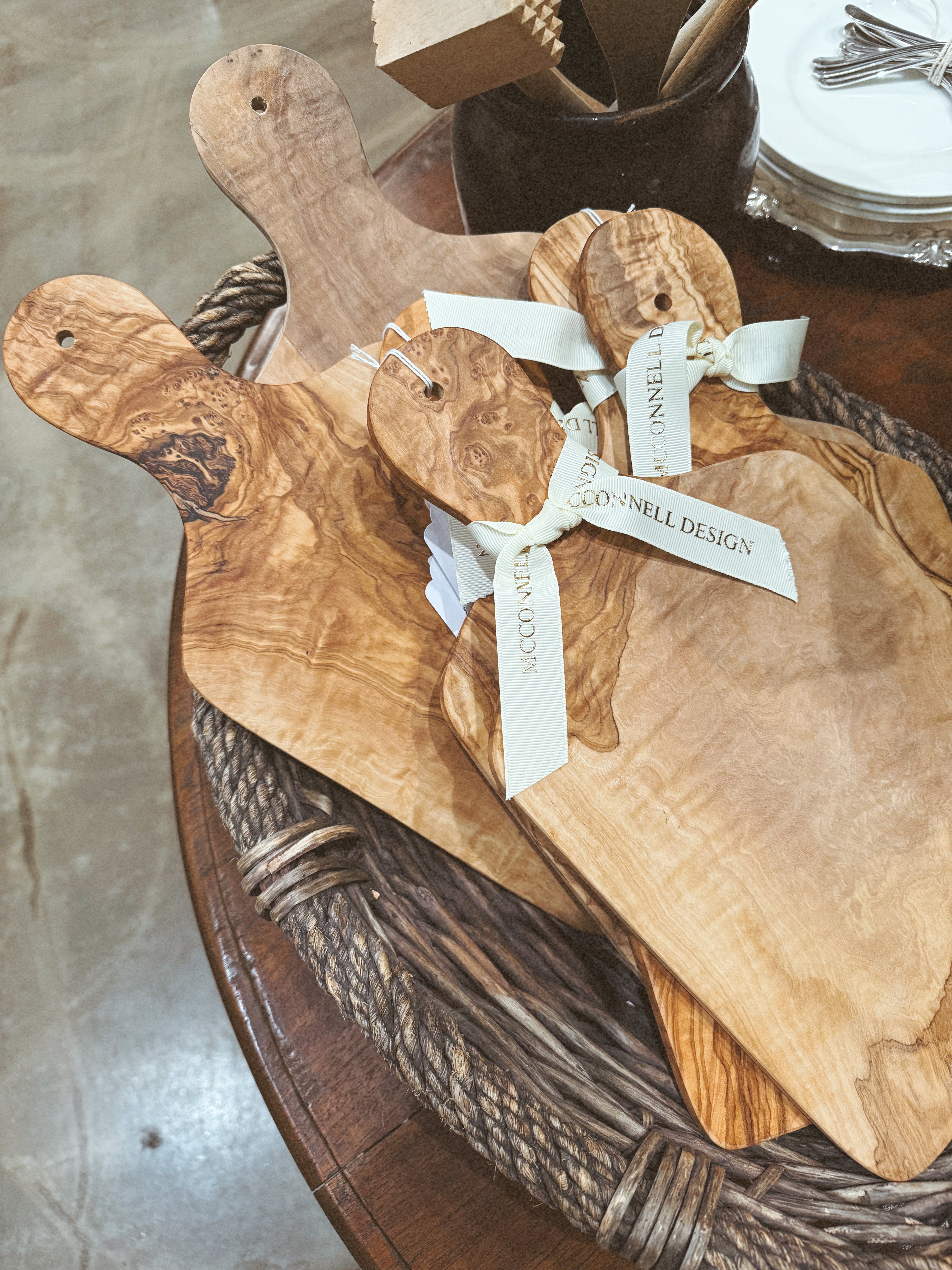 Each board is crafted from solid olivewood. We recommend pairing these with our vintage silver spreaders for an elevated and collected look.