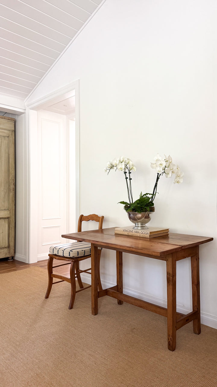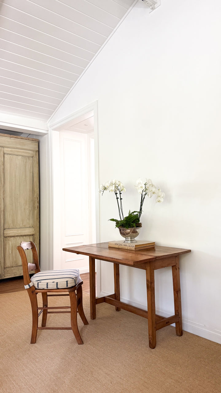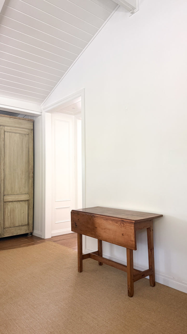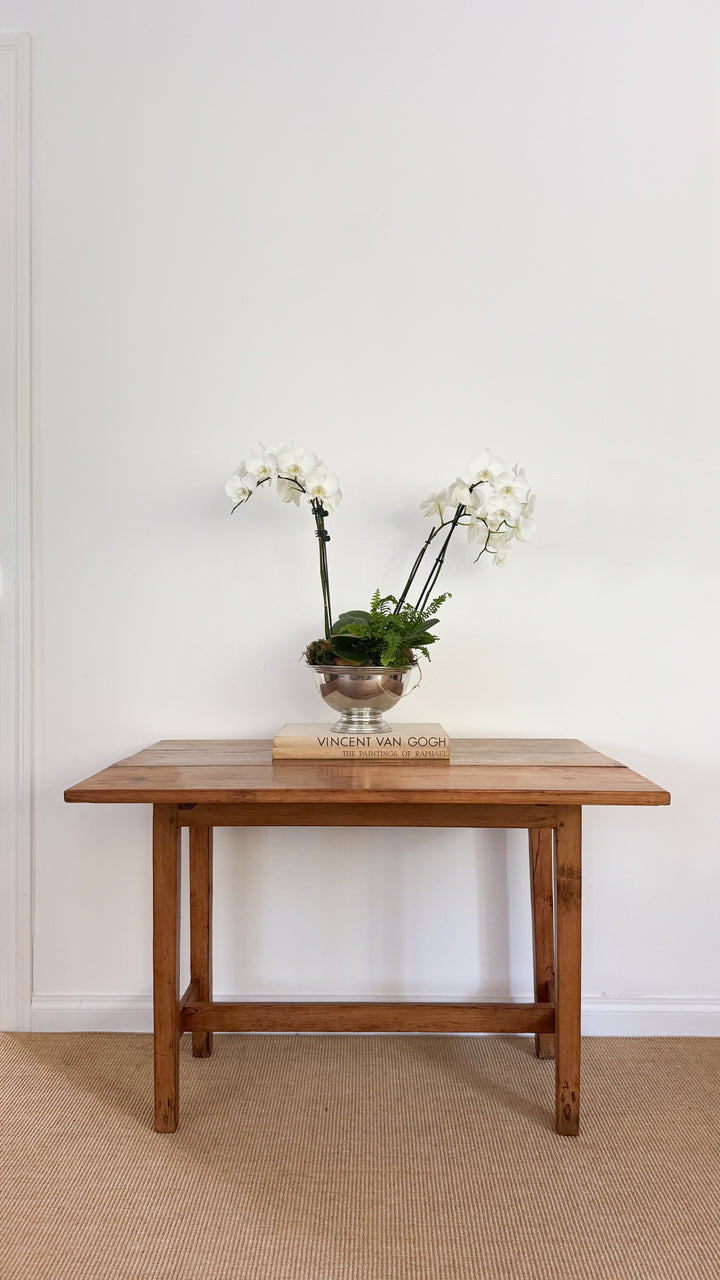 Simple yet enduring, this 19th-century American pine table embodies the warmth and character of classic Americana style. With its single drop-leaf design and richly patinated surface, it offers remarkable versatility. Use as a console table, kitchen table, desk, bar, bedside table, or even a side table between club chairs. A beautiful blend of utility and heritage.