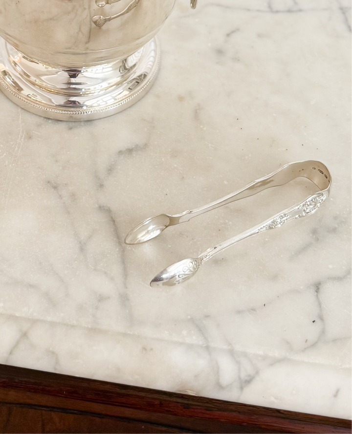 A hard-to-find item. Discovered in the English countryside, these antique silver plate ice tongs are the perfect accompaniment for your bar set up. Pair with an ice bucket of your choice.