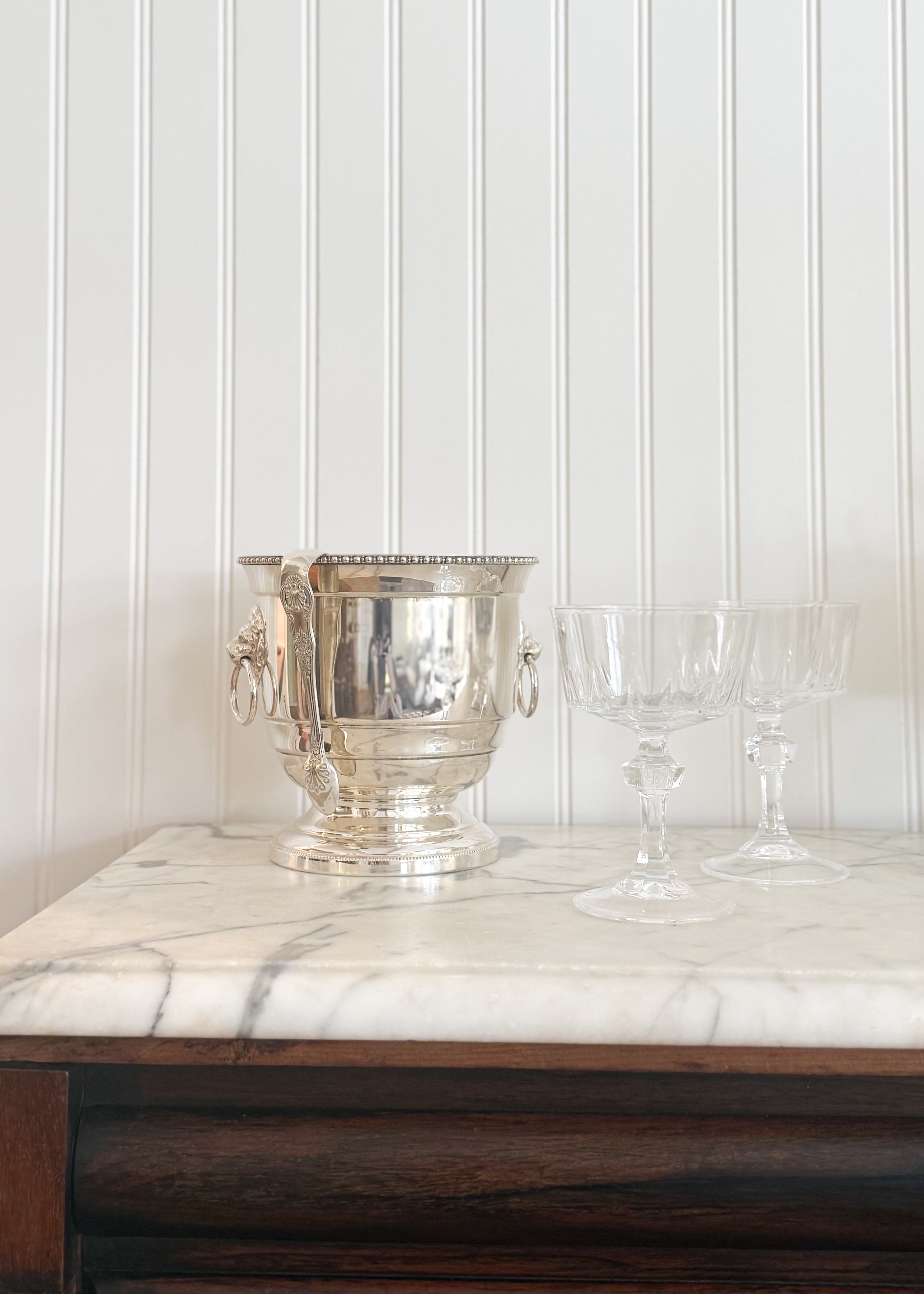 Shown styled with our Vintage English Silver Lion Ice Bucket.