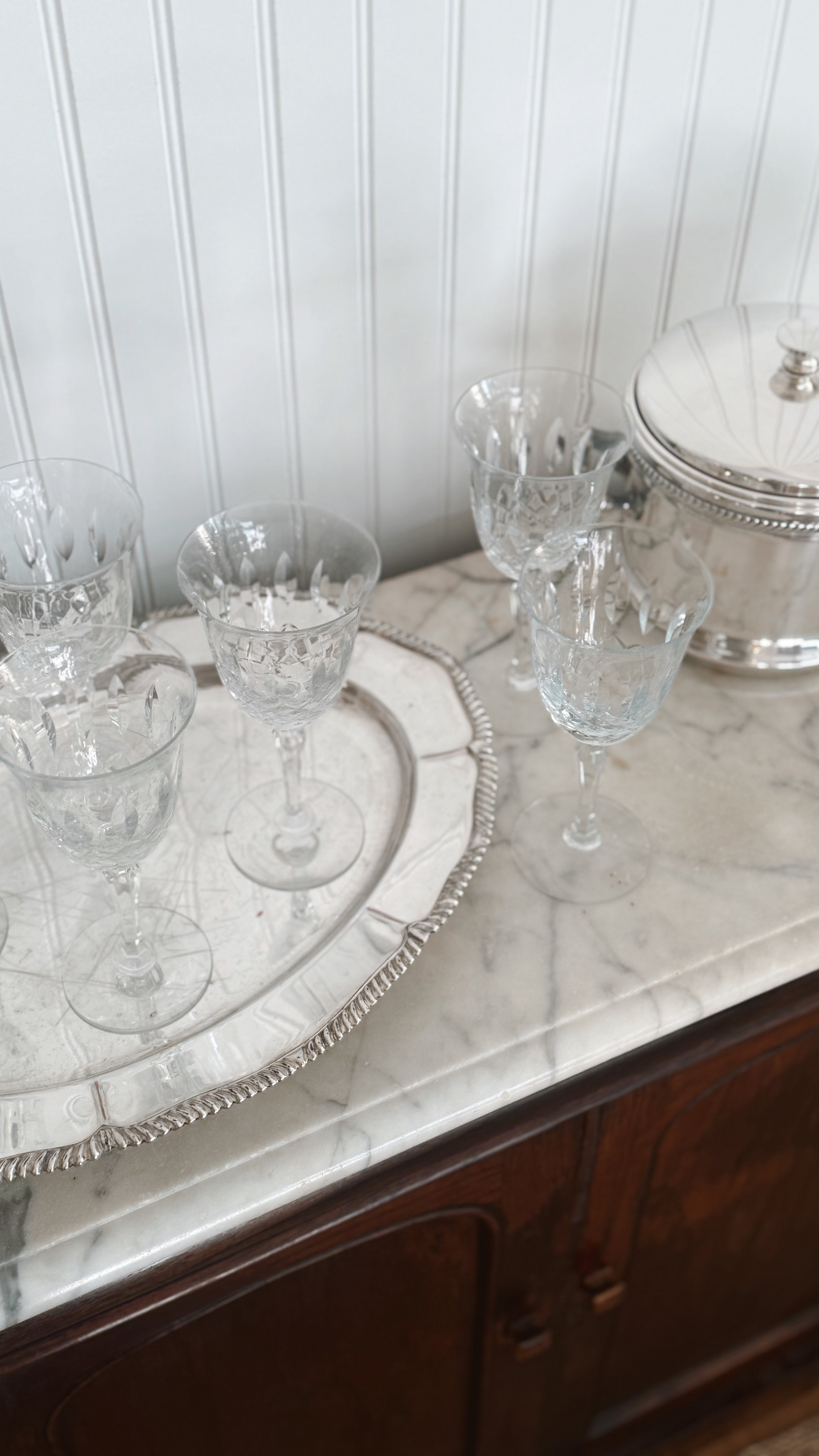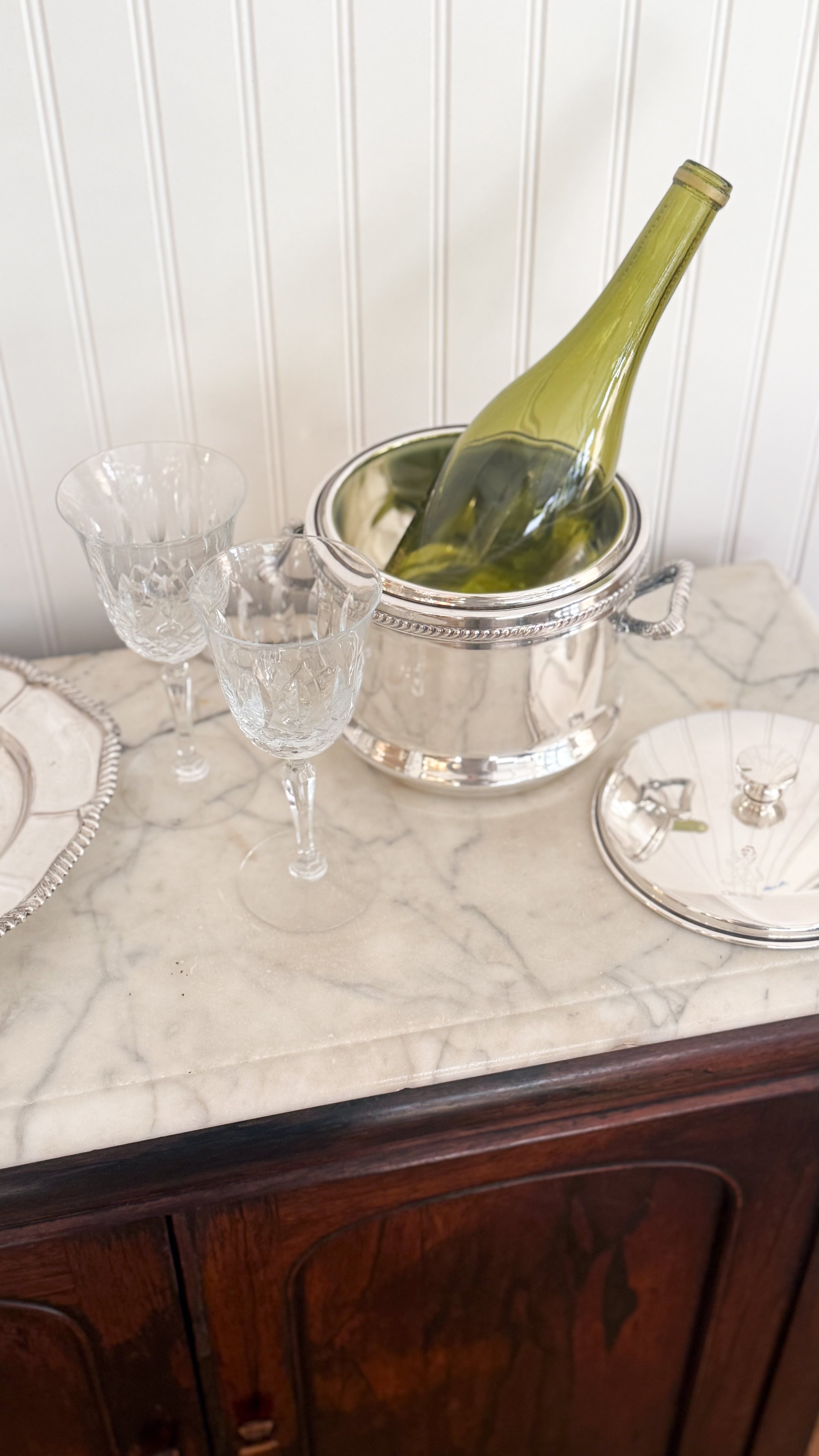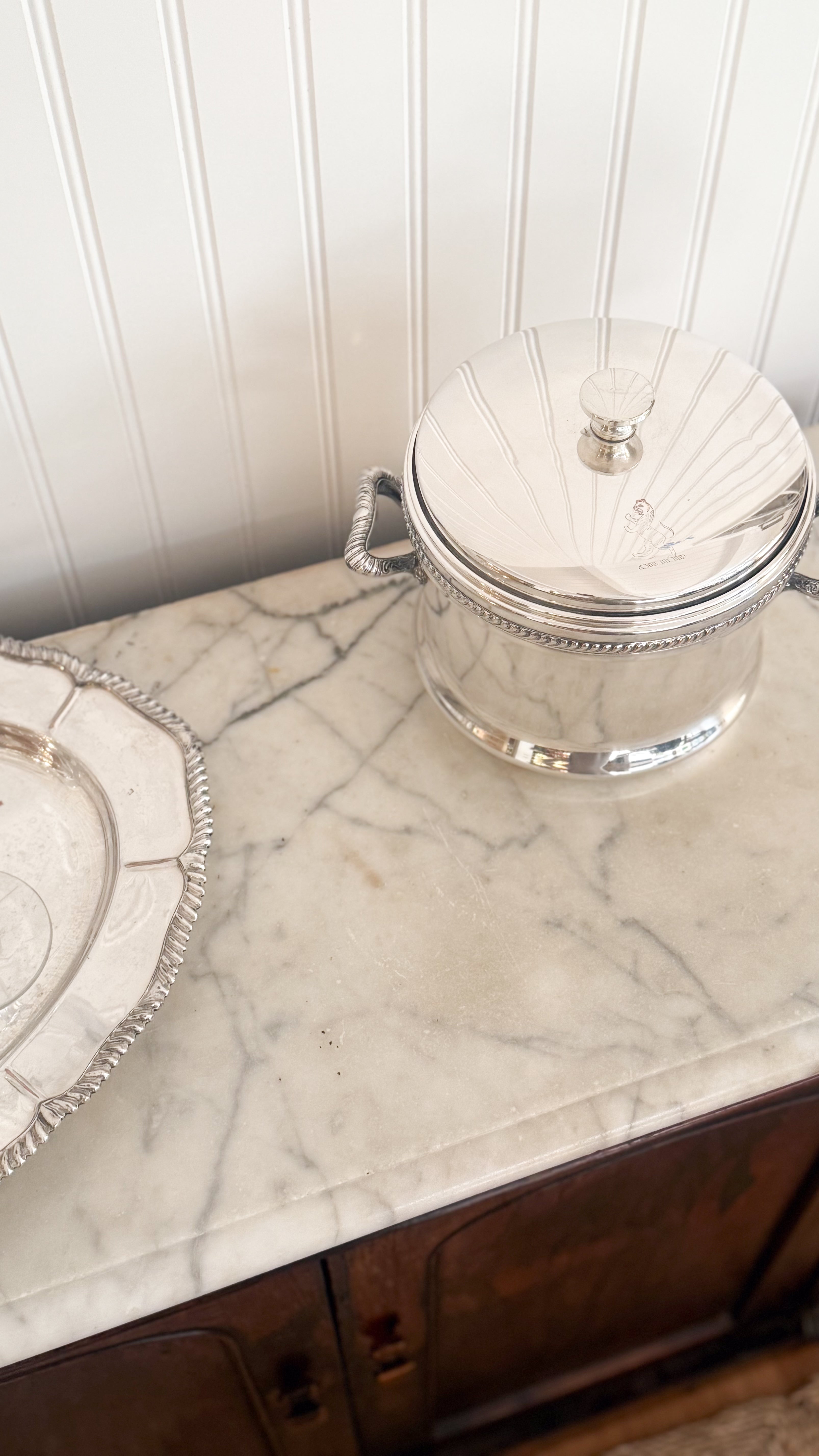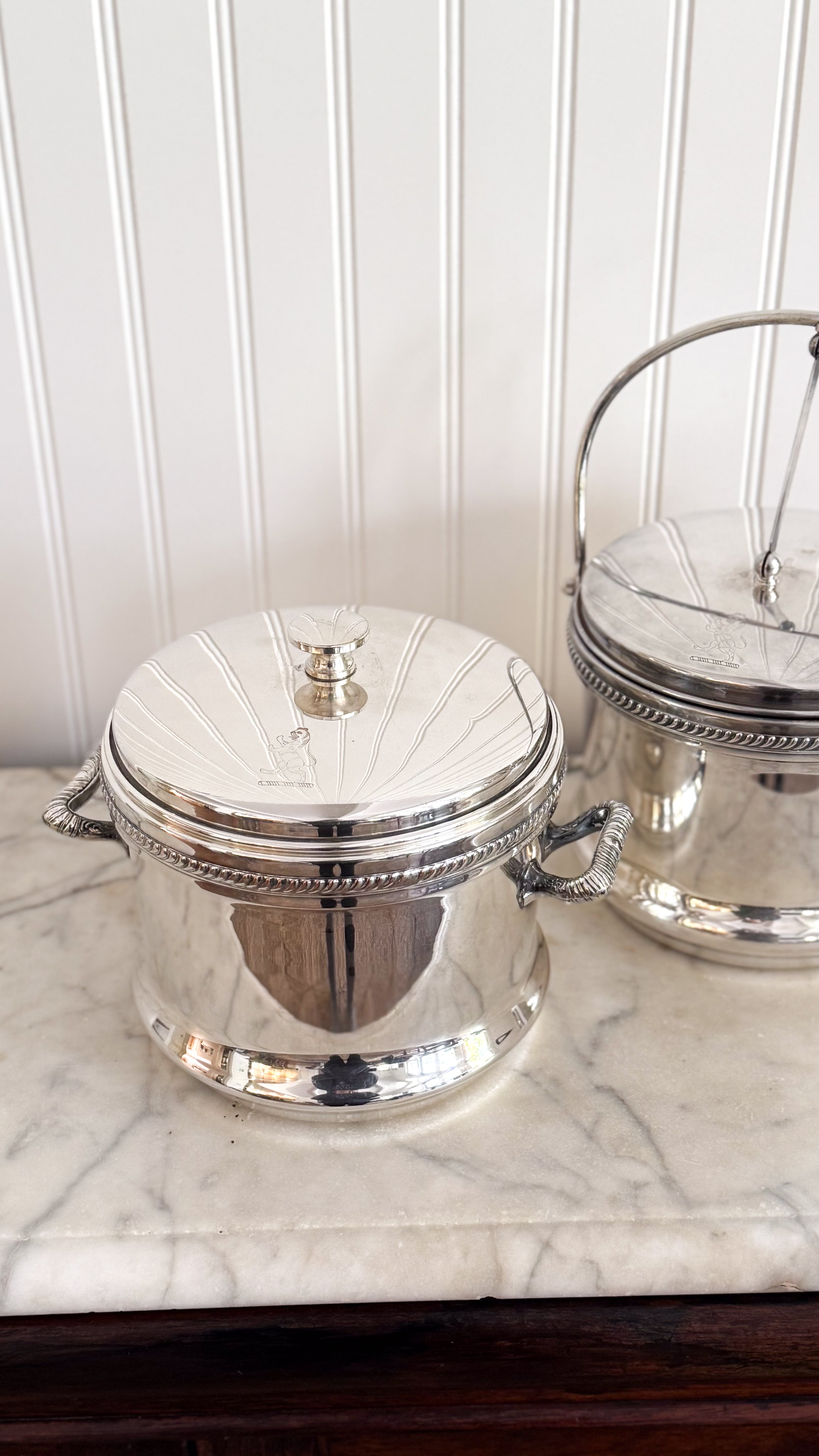 Shown styled with our Vintage Silver Lion Ice Bucket with Hinged Lid & Vintage English Sheffield Lion Tray (coming soon.)