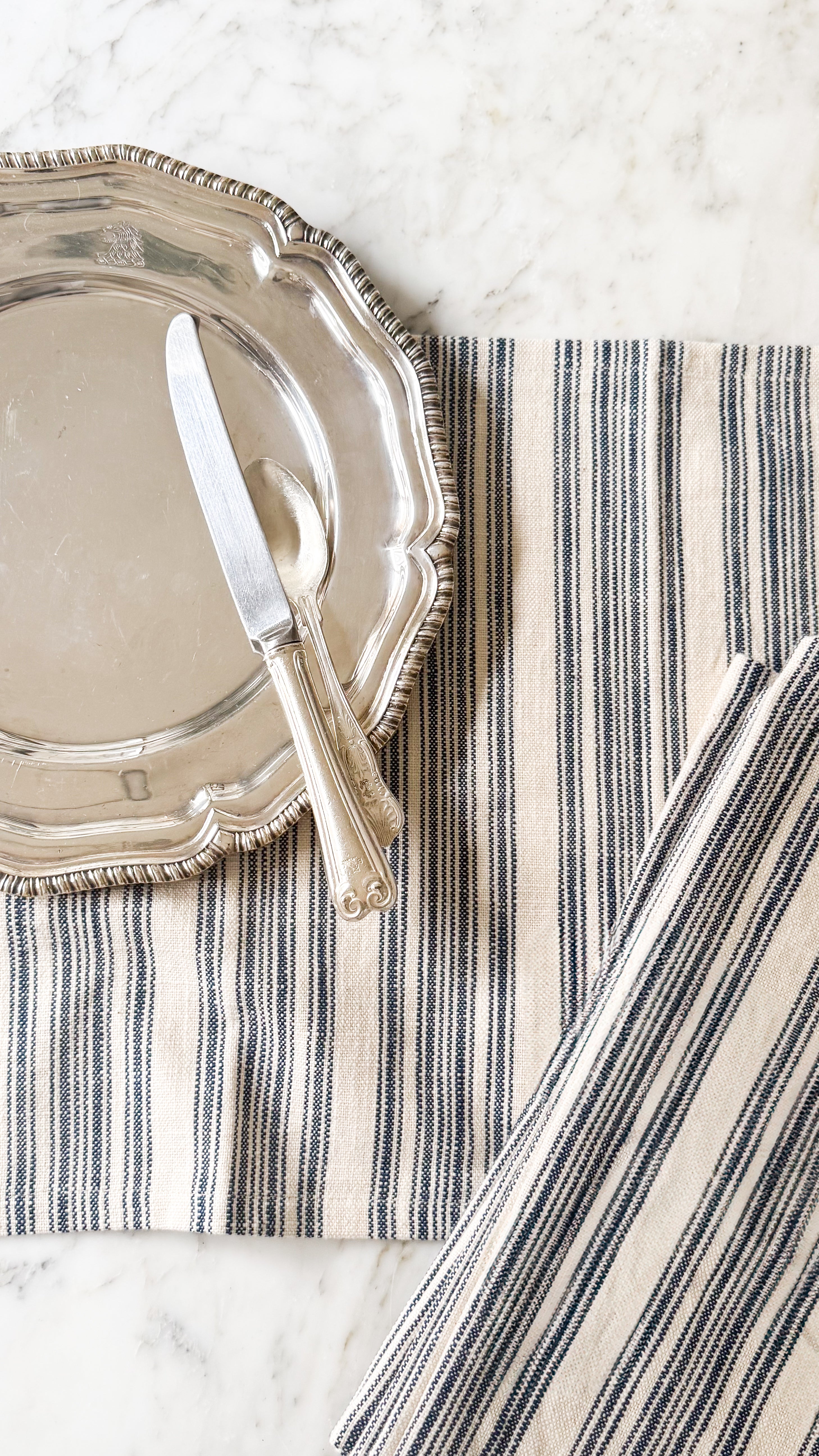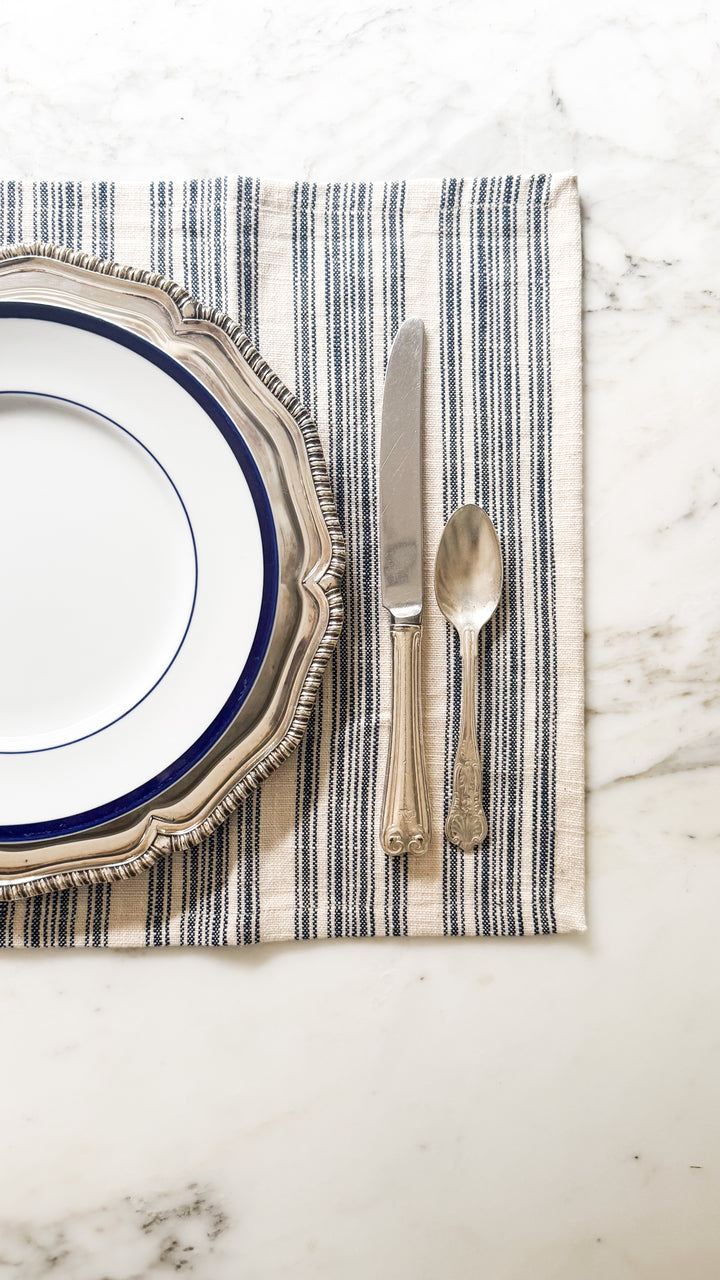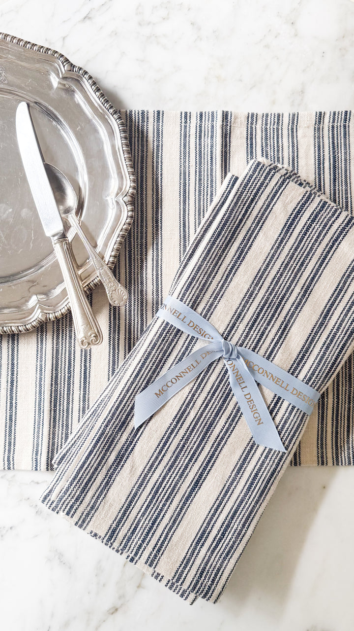 Add a touch of coastal charm to your table with these soft, organic cotton placemats in classic blue and white stripes.