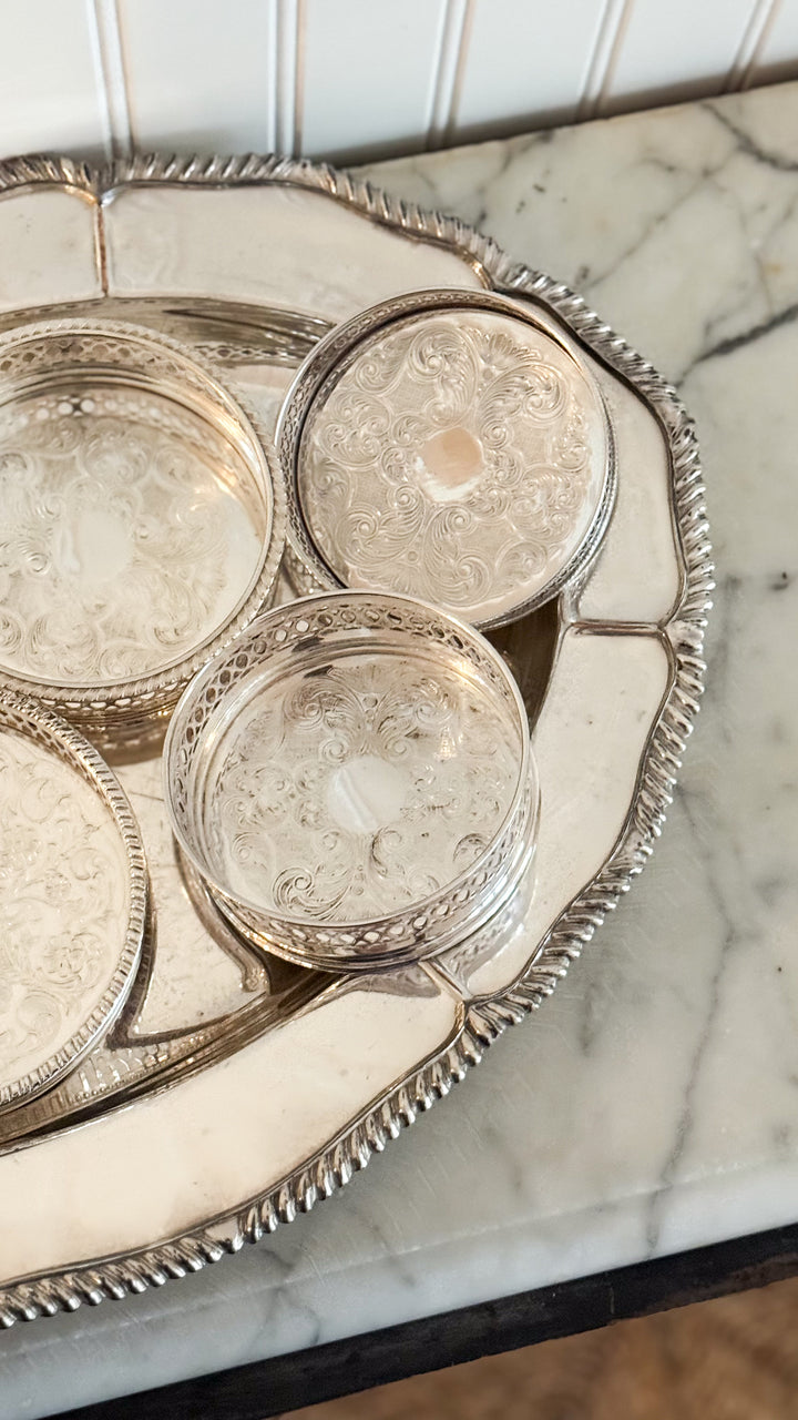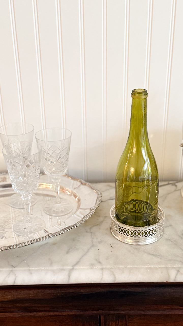 Imported from England, these elegant vintage silver wine coasters bring timeless elegance to your home bar or dining experience. Similar to our Traditional English Wine Coasters featuring a wood base, this selection is for an entirely silver option. Composed of silver plate.