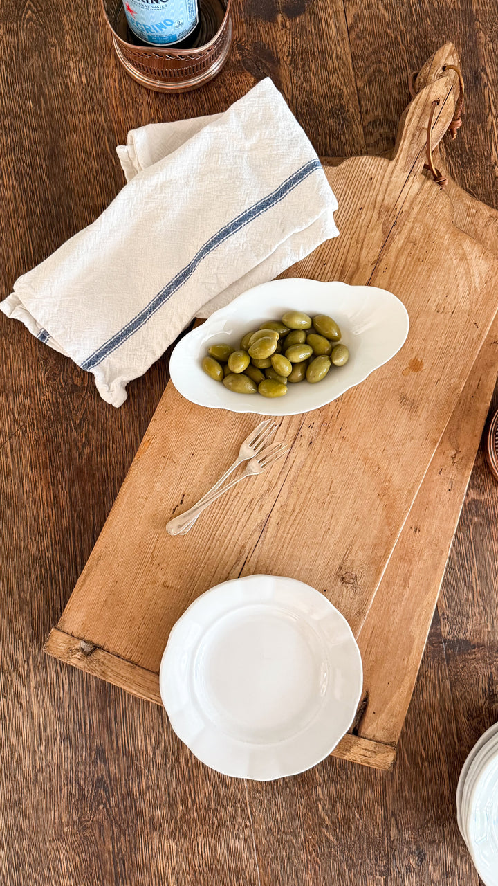 Shown styled with our European Bread Boards & Vintage English Silver Wine Coasters.