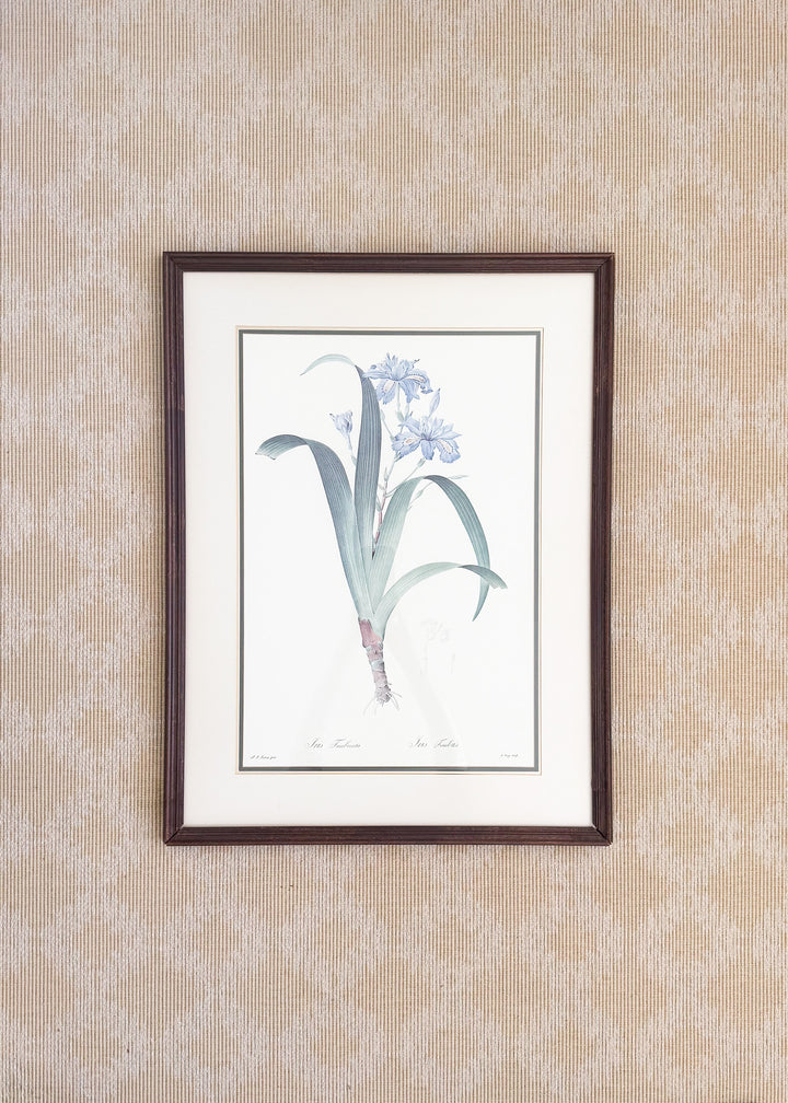 Vintage French botanical print after the work of renowned artist Pierre-Joseph Redouté (1759–1840), celebrated for his exquisite floral etchings of the early 19th century. These large-scale vintage reproductions are beautifully framed in wood, offering timeless botanical beauty with classic French charm.